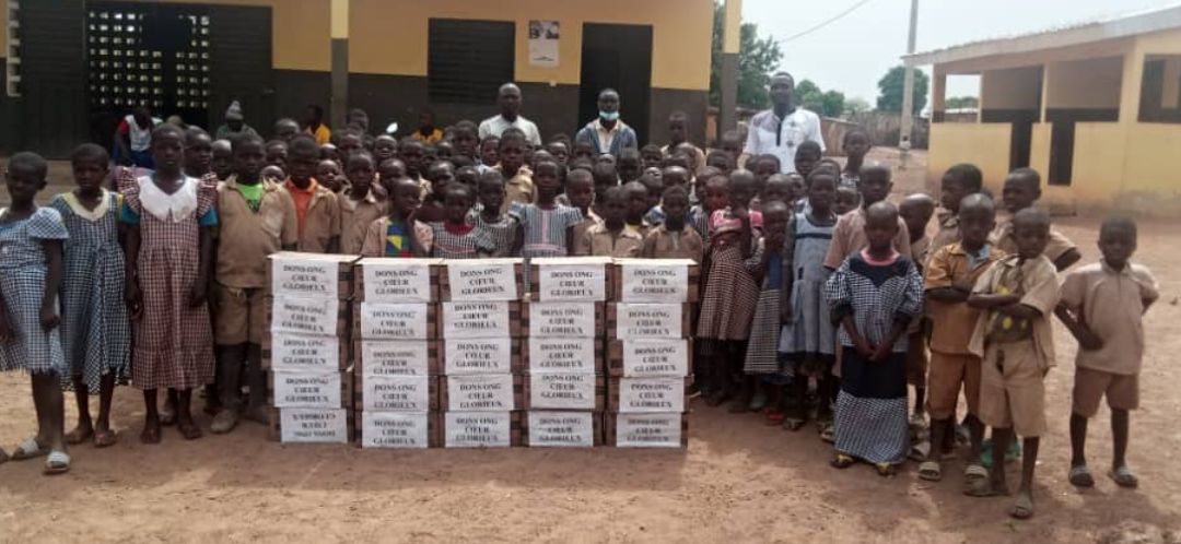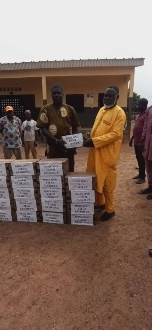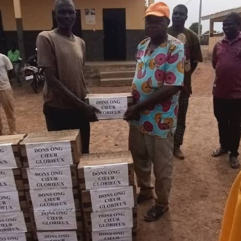 Le 02 décembre 2023, à l'occasion de la journée de lutte contre le Vih-Sida, l'Ong Coeur Glorieux a offert aux enfants atteints de Vih Sida, 30 paquets de pâtes alimentaires, 30 lots de laits en poudre, 60 boîtes de tomates concentrées, 30 bidons de 03 litres d'huile et 30 sacs de riz de 22,5 kg.