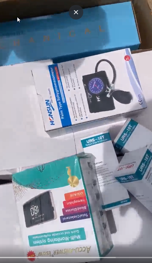 Les enfants ont aussi recu par avance des cadeaux pour la Noël et un carton de médicament pour leur traitement.